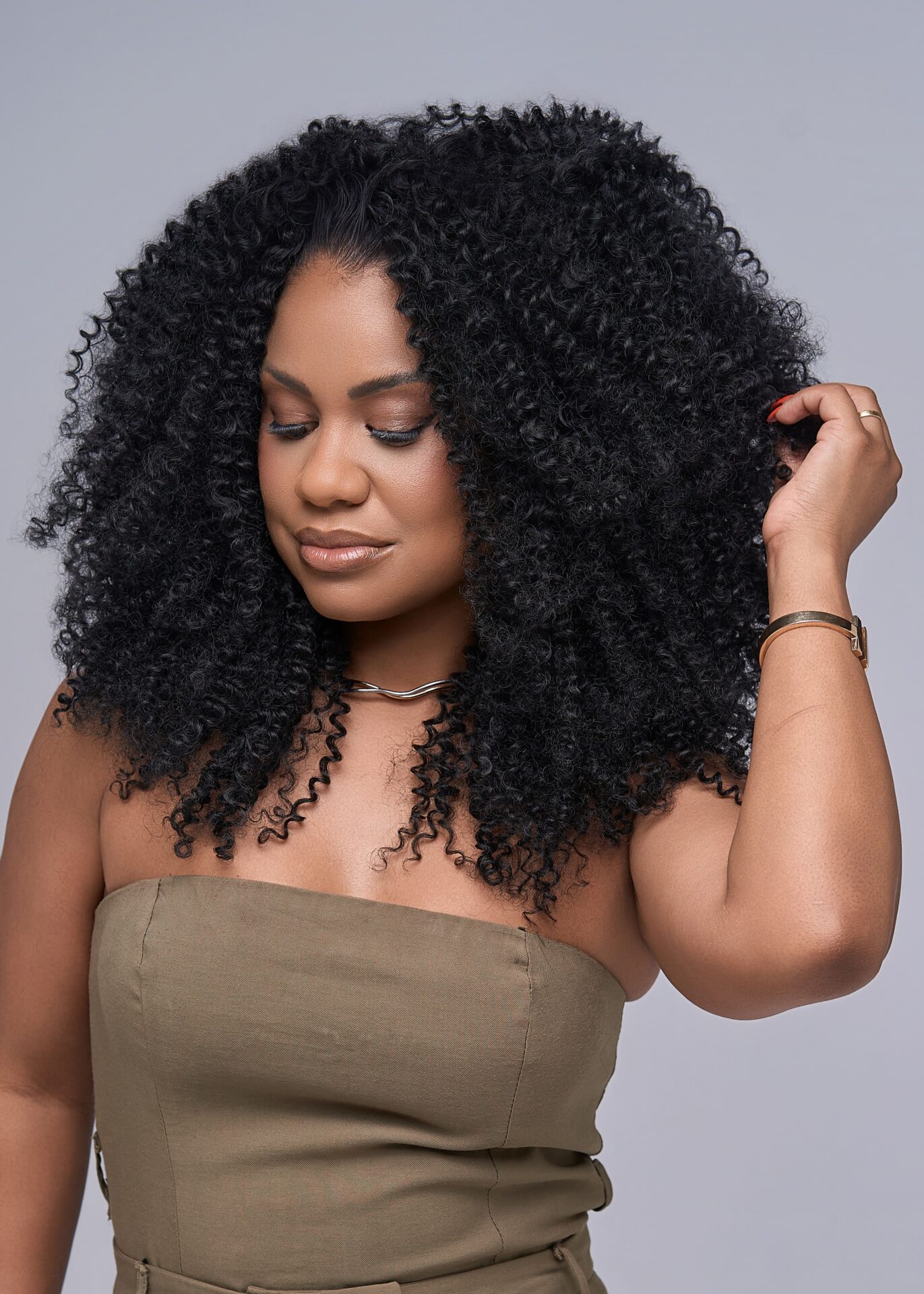 - Cor Preto: Tom intenso e clássico, que valoriza a textura crespa e combina com qualquer estilo e ocasião.