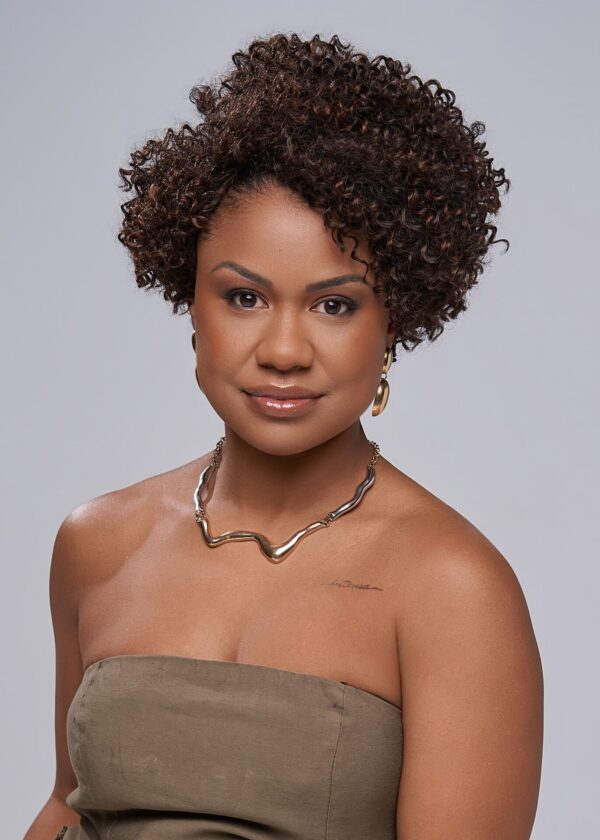 - Cor Morena Iluminada: Tom marrom quente com reflexos suaves que iluminam o rosto e realçam a textura crespa com sofisticação.